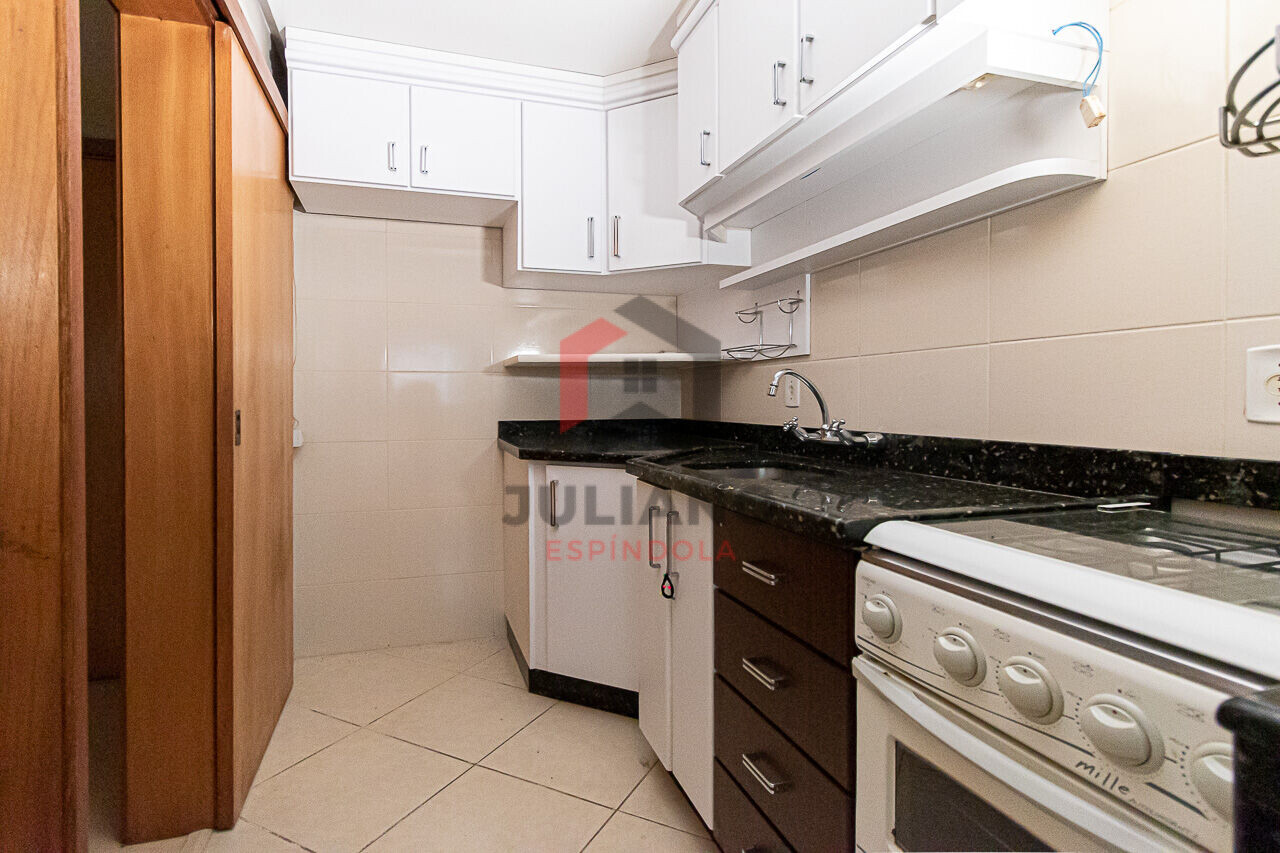 Apartamento de 2 dormitórios semimobiliado (cozinha, banheiro e dormitórios), sacada fechada com churrasqueira e piso laminado de madeira.