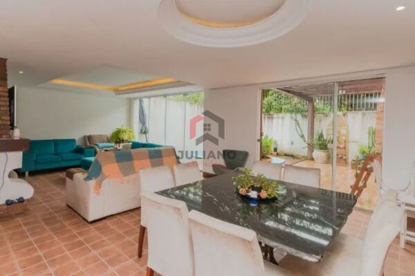 Localizada em uma das ruas nobres do bairro, esta casa oferece uma suíte com closet e mais três dormitórios. No térreo, você encontra um hall de entrada, lavabo, cozinha rústica com forno campeiro, banheiro auxiliar, além de living e sala de estar integrados ao jardim de inverno e piscina, com lareira e churrasqueira.